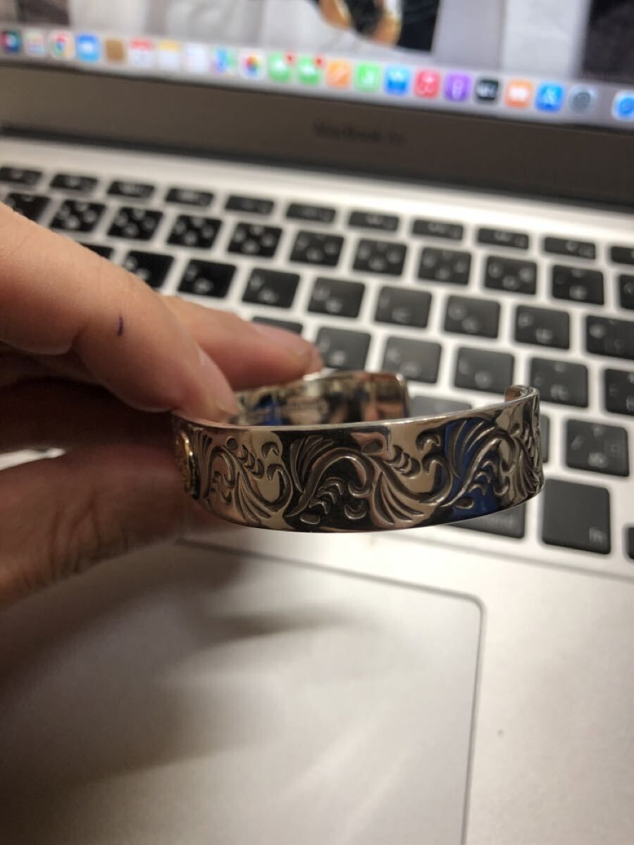 福岡 FIRST ARROW S ファーストアローズ K 18付 平打12 mmカラ草彫り バングル ブレスレット シルバー950 BR-026 FK