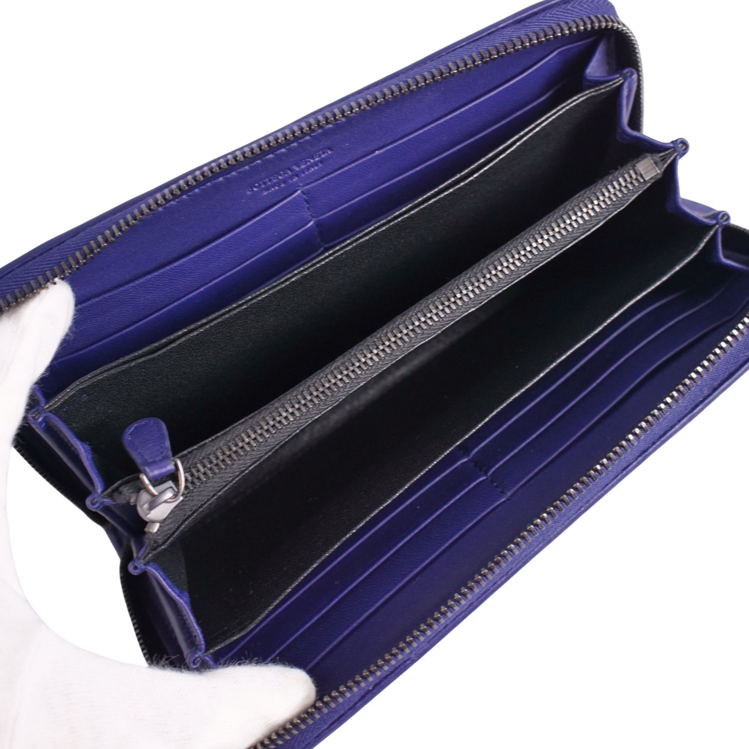 極美品 ボッテガヴェネタ BOTTEGA VENETA 財布 ラウンドファスナー ロングウォレット イントレチャート メンズ ネイビー