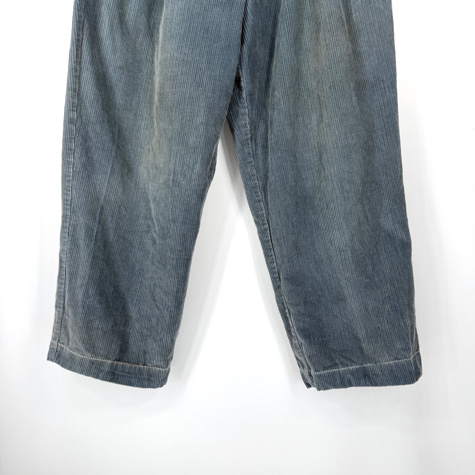 ブルーのコーデュロイ生地が味わい深く、太めのシルエットが90年代らしいリラックス感を演出します。
