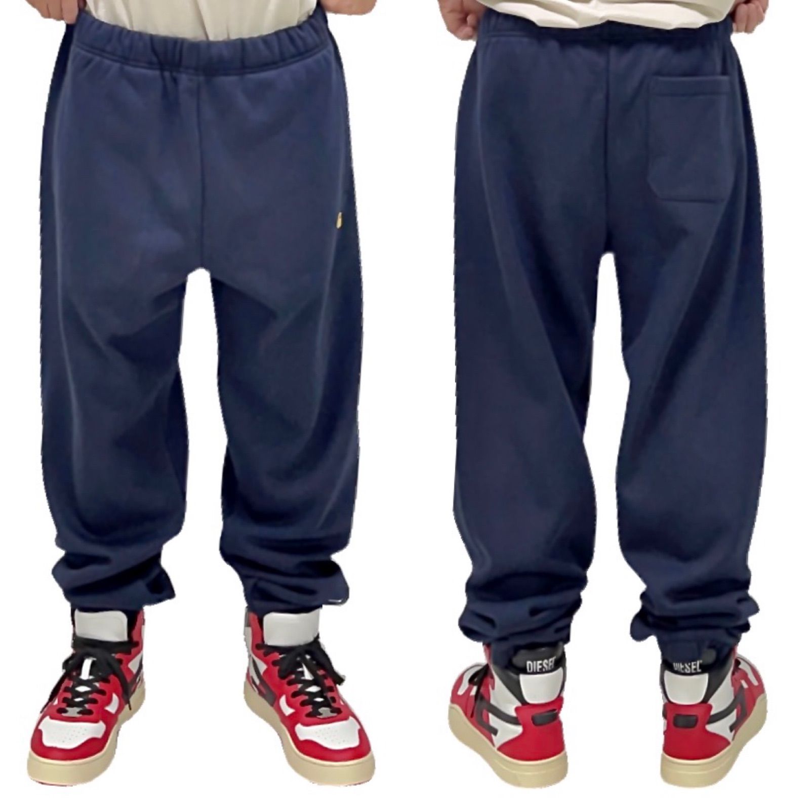 ブランドロゴを左足に刺繍したシンプルなスウェットパンツ、しっかりした厚手の生地で、裏地は起毛でフリースのような穿き心地で快適に穿いて頂けます。