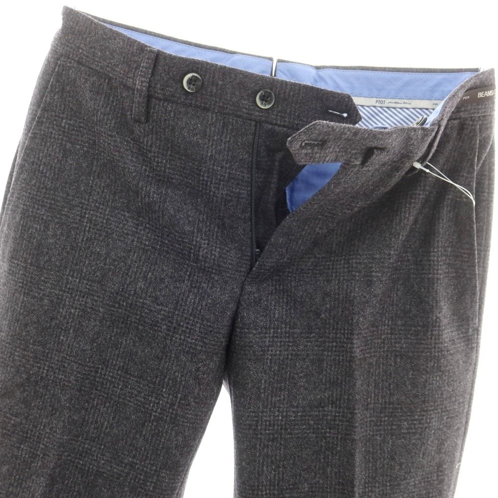ピーティーゼロウーノ PT 01 BEAMS F別注 ウール チェック ドレススラックスパンツ グレー サイズ42 メンズ