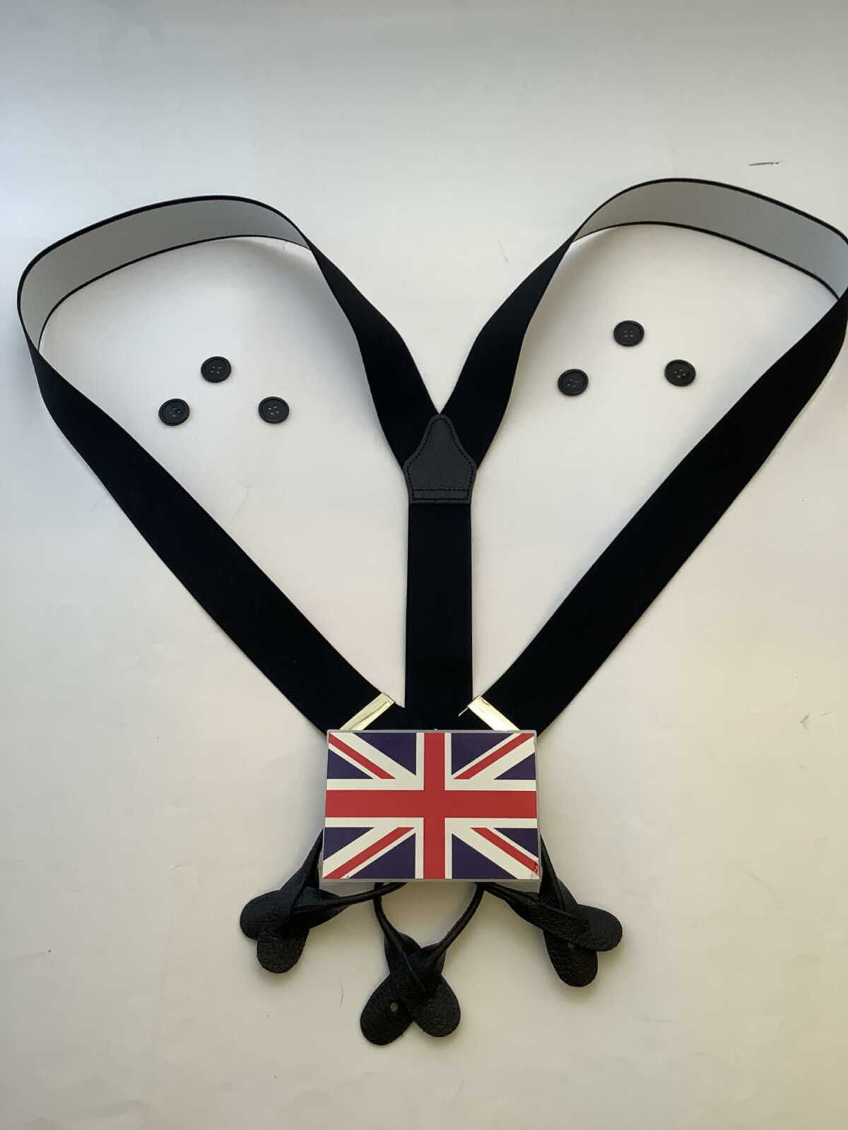 サスペンダー 英国製アルバートサーストン クラシック6ボタン留BKGD黒色 B 143