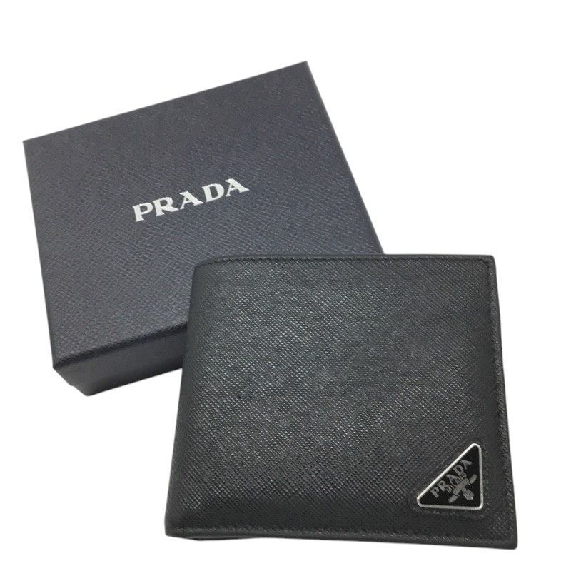 PRADA プラダ 二つ折り財布 2 M 0738 コンパクト財布 レザー ブラック メンズ 品 -B 質屋 か n