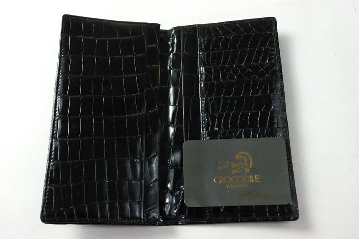 リアルクロコ 札入れ 2点セット 二つ折り 財布 ウォレット カードケース まとめて メンズ ブラック CROCODILE