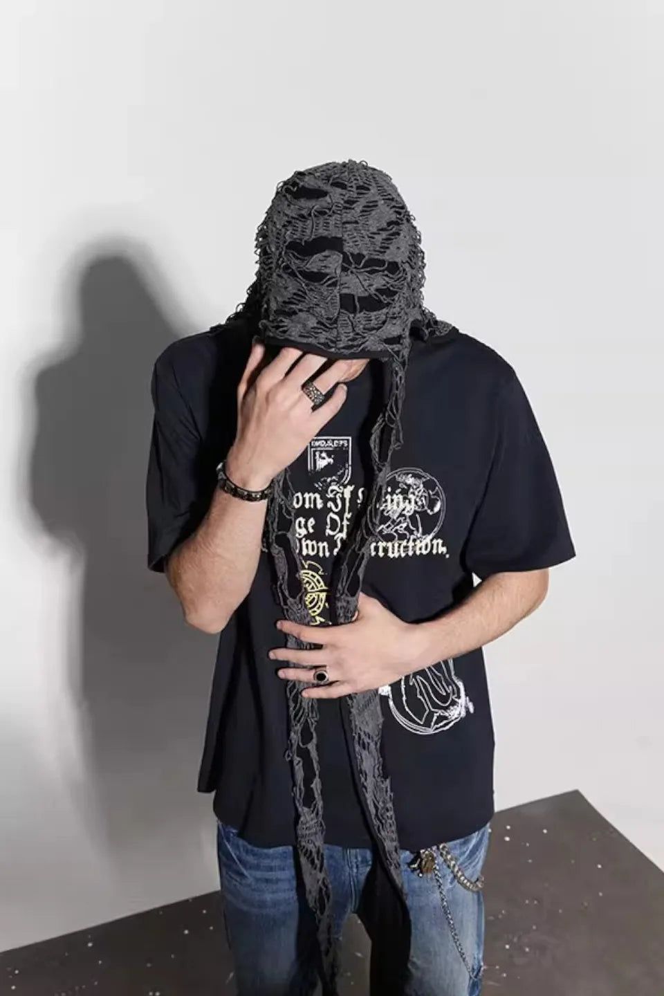 DND4DES / ドゥーラグ / 兎耳 / 破れ加工 / アナーキー / ヴィジュアル系 / グランジ / ストリートファッション