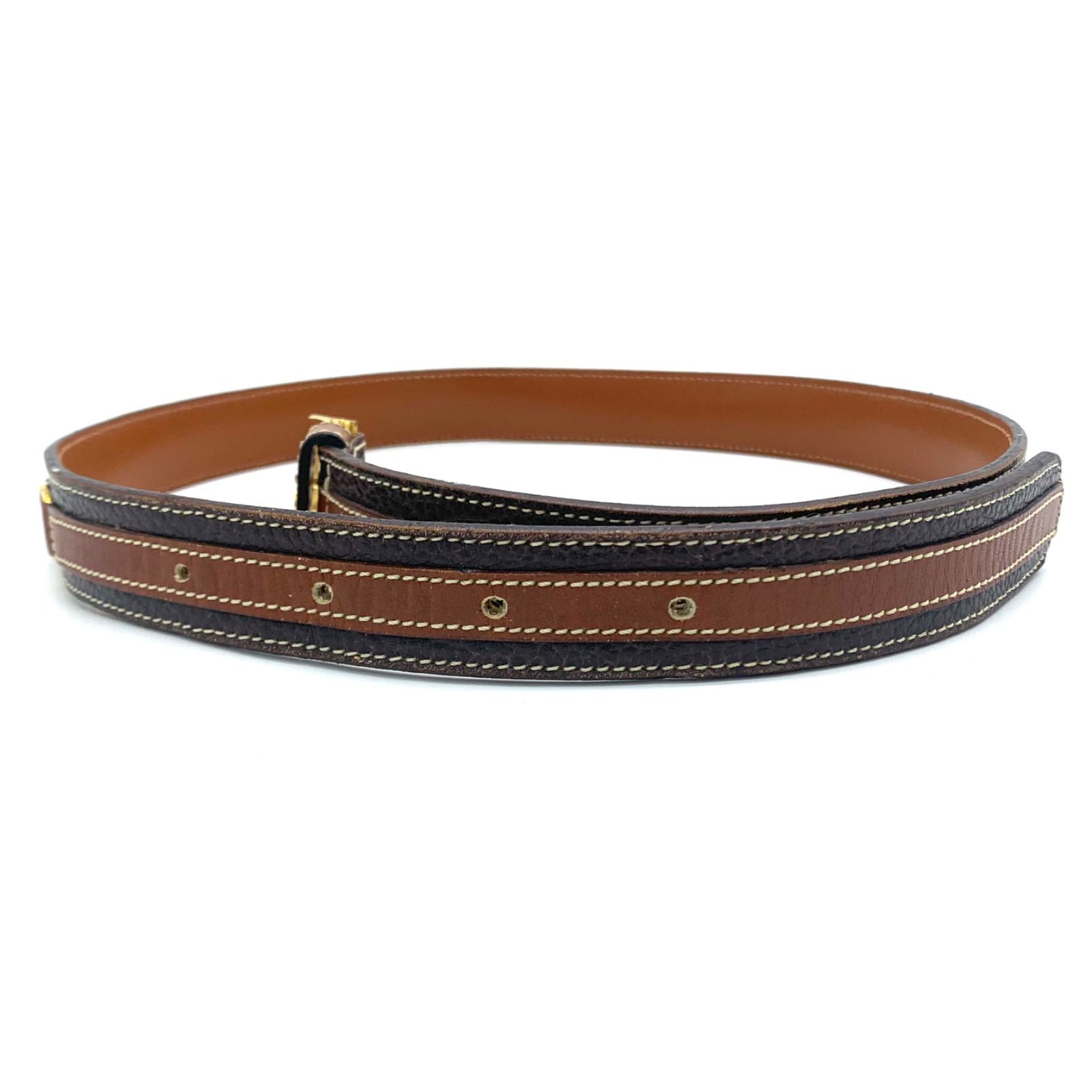 ベルト 80 レザー ゴールド金具 ロゴ ユニセックス ブラウン