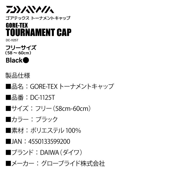 ダイワ ゴアテックス トーナメント キャップ ブラック フリー 58 cm-60 cm DC-1125 T GORE-TEX 釣り具 フィッシング