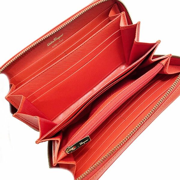 サルヴァトーレ フェラガモ 長財布 ガンチーニ ラウンドファスナー長財布 カーフ レザー 革 LAVA コーラルオレンジ系 22 B 742 Salvatore Ferragamo アイコン ダブルガンチーニ ファスナー長財布 財布 ロングウォレット